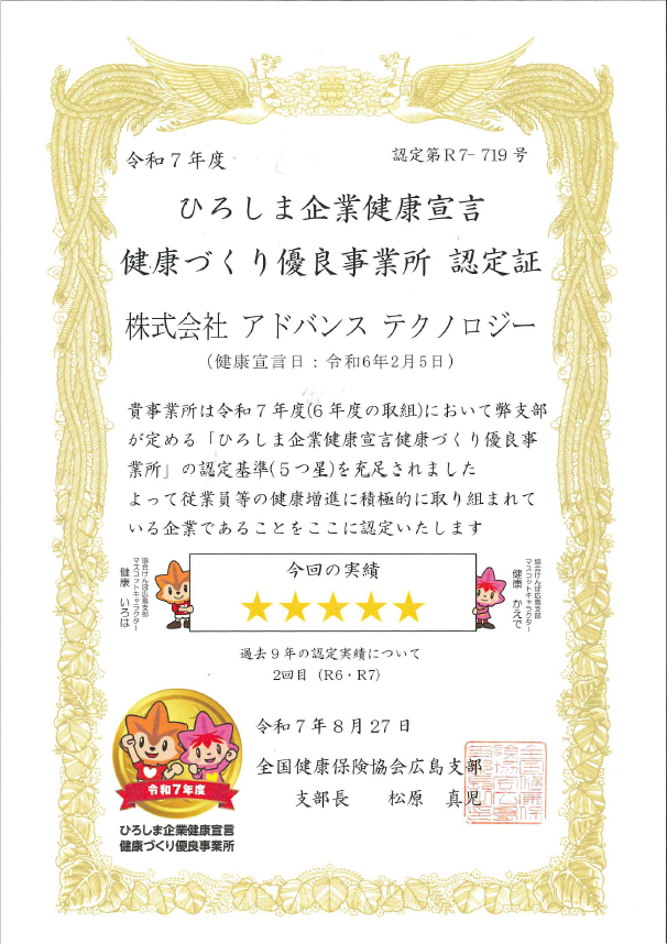 「働きやすい職場づくりを整えている企業」として認識されるよう引き続き、従業員の健康維持・増進に努めてまいります。
