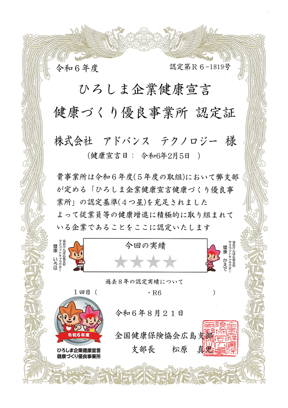 「働きやすい職場づくりを整えている企業」として認識されるよう引き続き、従業員の健康維持・増進に努めてまいります。